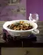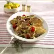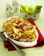 Wash and clean the chanterelles. Place the slices of bacon on top of each other and cut into cubes. Peel and slice the onion. Knead baking mix and 250 ml water to a smooth dough.
