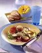 Mix beans, chanterelles, tomatoes and vinaigrette. Wash the thyme, dab dry and add the leaves, except some for garnishing, from the stems and fold into the salad. Grey bread tastes good with it.