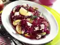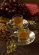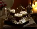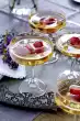 Pour Blue Curaçao syrup on a plate. Put sugar on a second plate. Dip 4 glasses with the rim of the glass first in syrup, then in sugar. Put peach nectar, whipped cream, cassis syrup, chanterelle and ice cubes into a shaker and shake vigorously for about 20 seconds.