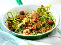 Separate eggs. Beat the egg white and 2 tbsp. water until stiff, adding 60 g sugar. Stir the egg yolks into the beaten egg white. Mix flour and baking powder, sieve over the mixture and fold in. Spread the mixture onto 2/3 of a baking tray lined with baking paper and bake in a preheated oven (electric cooker: 200 °C/ convection oven: 175 °C/ gas: see manufacturer) for approx. 6 minutes. Take out and let cool down