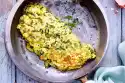 Preheat oven (electric cooker: 150 °C/circulating air: 125 °C/gas: see manufacturer). Heat 1 tablespoon of oil in a pan with lid (base approx. 24 cm Ø). Pour in half the egg mixture. Cover and allow to set on low heat until the underside is lightly browned.