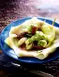 Prepare the spaetzle in boiling salted water according to the instructions on the packet. In the meantime, clean and wash the spring onions and cut them into small pieces. Wash and clean the mushrooms and oyster mushrooms.