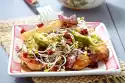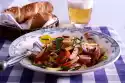 Wash the sprouts and drain well. Clean, wash, shake dry and cut into strips. Peel and finely chop the onion. Drain sweet and sour radishes on a sieve, catching the stock. Cut cheese into strips and white sausages into slices.