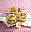 Wash lettuce, dab dry and tear into bite-sized pieces. Clean and wash rocket salad. Clean and wash radishes and cut into slices. Sort the sprouts. Chop pumpkin seeds roughly. Remove rind from cheese and cut in half lengthwise.