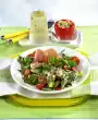 Wash the lettuce, dab dry and tear into bite-sized pieces. Clean and wash the rocket salad. Clean and wash radishes and cut into slices. Sort the sprouts. Coarsely chop pumpkin seeds. Remove the rind from the cheese and cut in half lengthwise.