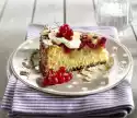 Separate eggs. Beat the egg whites until stiff, then pour in 100 g of sugar. Fold the egg yolks into the beaten egg white. Mix flour, starch and baking powder, sieve over the mixture and fold in. Grease the bottom of a springform pan (26 cm Ø). Add the mixture and smooth it down.