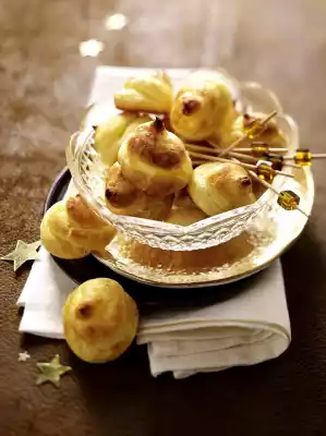Pour the mixture into a piping bag with a medium-sized punched spout. Spray approx. 20 small tuffs each onto 2 baking trays lined with baking paper