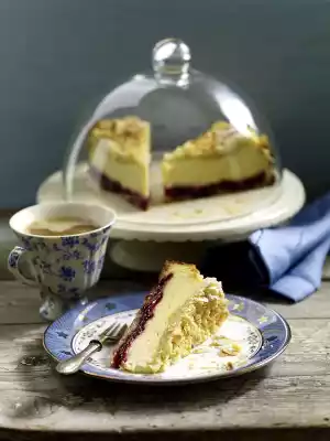 Mix the remaining crumbles with almonds. Spread over the cheese mixture.