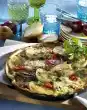 Unroll dough together with baking paper. Halve the plate 1 x lengthwise. Spread cheese, rosemary and garlic evenly on both plates. Roll each plate tightly from the long sides to the middle. Cut into 20 slices each.