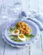 Sprinkle the rest with cheese. Bake in the preheated oven (electric cooker: 200 °C/ convection oven: 175 °C/ gas: level 3) for approx. 15 minutes. Wash the chives, dab dry and cut into small rolls, except for a little garnish.