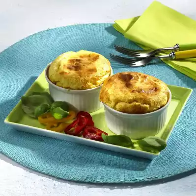 Season with salt, pepper and nutmeg. Beat the egg white until stiff and fold into the mixture. Pour into greased, higher, small casseroles (approx. 150 ml capacity). Bake in the preheated oven (electric cooker: 200 °C/ convection oven: 175 °C/ gas: level 3) for approx. 25 minutes.