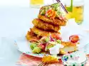 Pour the cheese mixture into a large bowl. Beat egg whites until stiff, fold in. Spread the mixture on the tins and place on a fat pan (deep baking tray). Pour on enough hot water so that the moulds are halfway up the water. Bake in a hot oven for about 15 minutes until golden brown. Take them out and let them cool down a little (they will collapse a little).