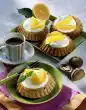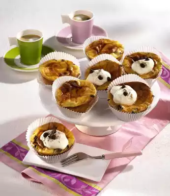 Whip the cream until stiff, pour in 1 sachet of vanillin sugar. Pour cream as a blob on the muffins, decorate with 1 tablespoon of chocolate drops and lightly dust with cocoa.