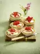 Put 12 cherries aside for decorating, pit the remaining cherries. Beat the eggs, sugar, 1 packet of vanillin sugar and salt until thick and creamy. Mix quark, mascarpone, lemon peel and 100 g cream. Stir in pudding powder and semolina. Fold in sugar and egg mixture. Grease muffin tray with 12 troughs very well and sprinkle with breadcrumbs.