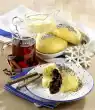 Fill in the dough. Spread pitted cherries on top. Bake in the preheated oven (electric cooker: 175 °C/ convection oven: 150 °C/ gas: level 2) for 45-50 minutes. Remove and let cool on a cake rack. Whip 200 g cream until stiff, pour in 1 sachet of vanilla sugar. Pour the cream as a blob on the muffins and decorate with the remaining cherries, cherry jam and mint to taste
