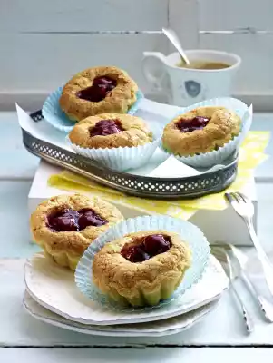 Mix cherries and jam. Put 2-3 cherries in each tartlet and cover with macaroon mixture. Spread the rest of the cherries on top. Place the tartlets on the grid of the oven. Bake in the preheated oven, lowest level (electric oven: 175 °C/ convection oven: 150 °C/ gas: level 2) for about 35 minutes. Let the finished tartlets cool down for 10-15 minutes, then remove them from the tartlet and let them cool down on a cake rack. Dust with icing sugar as desired. Whipped cream tastes good with it
