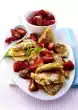 For the yeast dough 1⁄4 warm lukewarm milk. Put 400 g flour into a mixing bowl, add dry yeast (see fig. A) and mix both. Add 75 g sugar, 1 pinch of salt and 75 g butter in flakes.