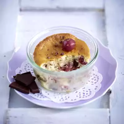 Chop the chocolate and fold into the dough with the cherries. Fill the glasses in the same way. Bake in the oven for about 35 minutes. Cover and preserving rings simmer in boiling water for 2 minutes. Drain.