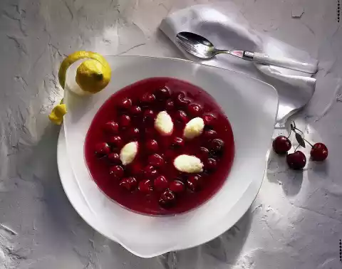 Wash and clean the cherries, dab dry and stone them. Stir starch and 3 tablespoons of cherry nectar until smooth. Put the cherries and the remaining nectar in a pot. Add sugar, vanillin sugar and lemon peel. Bring to the boil and stir in the mixed starch. Cook at low heat for about 3 minutes.