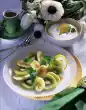 Remove lemon peel and let the soup cool down. For the dumplings bring milk, fat, salt and sugar to the boil. Sprinkle in semolina and stir until the semolina separates from the bottom of the pot as a dumpling. Let it cool down a bit and stir in the egg. Use two moistened teaspoons to make small cams out of the mixture and cook in lightly boiling water until they rise to the surface.