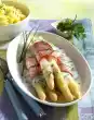 Mix cream and 1/4 litre water. Remove 4 tablespoons, stir with sauce powder and 3 tablespoons of sugar until smooth. Bring water and cream to the boil. Stir in sauce powder, bring to the boil and chill. Serve the stewed cherries with the vanilla sauce. Decorate with mint