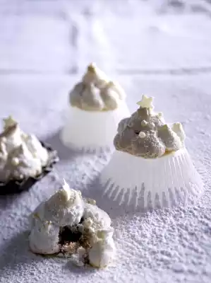 Preheat oven (electric cooker: 150 °C/circulating air: 125 °C/gas: see manufacturer). Line two baking trays with baking paper. Spread wafers on top. Place 1 cherry on each. Pour the egg whites into a piping bag with a perforated nozzle.