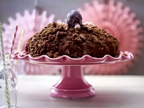 Cream 150 g butter, 150 g sugar, 1 vanilla sugar and 1 pinch of salt with the whisks of the mixer. Stir in the eggs one by one. Stir in chocolate. Mix 275 g flour, baking powder and cocoa and stir in alternately with the milk.