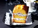 Cut off just 1⁄3 of the bottom horizontally and crumble roughly. Place the lower cake base on a cake plate. Spread the cherries evenly on the cake base, let them cool down.