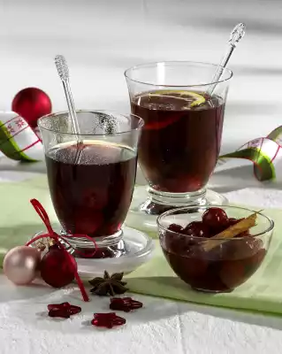 Pour 1 tablespoon of marinated cherries into each glass. Fill with hot mulled wine and serve.