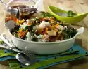 Peel the shallots and cut into strips. Wash basil, shake dry, pluck leaves from the stalks and, except for something to garnish, cut into strips. Wash the rocket, shake dry, sort and chop. Fold basil and rocket into the salad. Prepare the pasta in boiling salted water according to the instructions on the packet