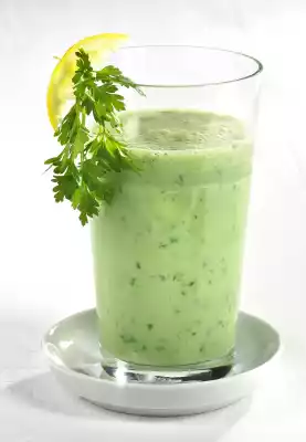 Peel the cucumber and cut into large pieces. Wash the chervil, dab dry. Put some stems aside for garnishing. Pluck the rest of the leaves from the stems. Puree buttermilk, cucumber, chervil leaves and lemon juice. Season to taste with honey and fill into glasses. Garnish with lemon peel and chervil