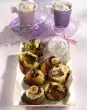 Put rice in plenty of boiling salted water and cook for 20 minutes. Heat 3 tablespoons of oil in a pan. Fry the chicken crisps for about 12 minutes. Cut mozzarella into 6 slices and halve. Place on the chicken and fry covered for another 4 minutes at low heat. Heat 1 tablespoon of oil in a saucepan. Brown the leek rings in it, steam for 1 minute. Add tomato pieces and tomato paste, bring to the boil. Season with salt, pepper and marjoram. Refine with cream. Pour rice on a sieve and drain.