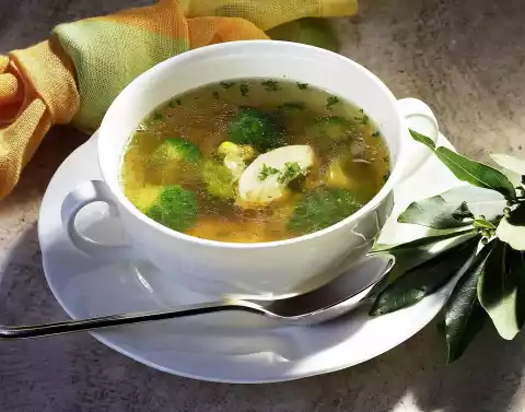 Let chicken breast cool down a little, peel skin and remove meat from the bone. Cut meat into strips. Bring the broth to the boil again, add broccoli and cook covered over medium heat for about 8 minutes. Drain the corn and add the chicken strips approx. 2 minutes before the end of the cooking time. Season soup with salt, pepper and Worcester sauce. Serve the soup in soup bowls sprinkled with parsley