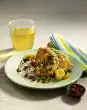 Put the beans in a sieve and rinse. Brush a coated pan with 1 teaspoon of oil. Leave the slices of bacon in it while turning them until they are crispy and take them out. Beat the eggs in portions flat in the pan. Fry over medium heat until golden brown. Season with salt and cayenne pepper