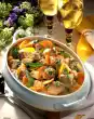 Heat 2 tablespoons of oil in a large frying pan. Brown the meat in it, season with salt and pepper and remove. Fry carrots in the frying fat, add garlic and cinnamon and fry briefly. Add 350 ml water, bring to the boil, stir in broth.