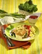 Spread the spinach in an oiled casserole dish. Place the cutlets and then the tomatoes on top. Pour sauce over them and sprinkle with cheese. Bake in a preheated oven (electric cooker: 200 °C/circulating air: 175 °C/gas: level 3) for approx. 15 minutes. Ciabatta tastes good with it