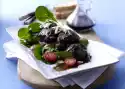For the salad, wash the tomatoes, grate them to dry and cut them into slices. Clean and wash spring onions and cut them into diagonal rings. For the vinaigrette, mix vinegar, honey, salt and pepper. Gradually add olive oil. Mix tomatoes, spring onions and vinaigrette