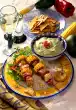 Wash marjoram, dab dry and chop the leaves, except for a little bit for garnishing. Mix the diced apricots, onions, tomatoes, marjoram, ketchup, 1 tablespoon lime juice and olive oil and season to taste with salt, pepper and a little chilli. Keep salsa cold. Clean and wash the spring onion and cut it into diagonal thin rings. For the sour cream mix quark and crème fraîche and season with salt and pepper. Stir in spring onions and chill. Cut each chicken filet very diagonally into about 4 slices. Season small chicken escalopes on both sides with salt and pepper. Whisk the egg in a deep plate. Crumble 100 g chips and mix with breadcrumbs. First turn the cutlets in flour, then pull them through the egg and finally bread them in the chips. Heat oil in a pan and fry the escalopes in 2-3 portions on both sides for 3-4 minutes at medium heat.