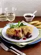 Deglaze the frying stock with sherry. Add chicken soup and cream and bring to the boil. Add sauce thickener while stirring. Add plums and simmer for about 5 minutes. Season sauce with salt and pepper. Arrange one chicken filet each with noodles, broccoli and sauce on a plate