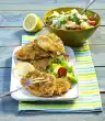 Wash the chicken fillets and pat them dry. Wrap a slice of bacon around each one. Season with pepper and fry in hot oil while turning for about 15 minutes. Cook the noodles in boiling salted water for about 10 minutes. Clean and wash broccoli and cut into florets.