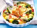 Cook the casserole in a preheated oven (electric cooker: 200 °C/ convection oven: 175 °C/ gas: see manufacturer) for approx. 25 minutes. Cut meat into coarse slices. About 10 minutes before the end of the baking time, place the meat in the depression on the vegetables and drizzle the rest of the sauce over it