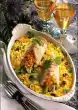 Cook the pasta in boiling salted water for 8-10 minutes. Drain the carrots and collect the vegetable stock. Remove the fillets and keep both warm. Sauté onion in frying fat. Deglaze with stock and cream, bring to the boil. Simmer for about 3 minutes. thicken sauce