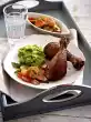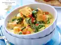Drain on kitchen paper and let cool off. Deglaze the meat with 200 ml water and cream, except for a teaspoon. Stir in the seasoning composition and sauce thickener and bring to the boil while stirring. Season to taste with salt, pepper, lemon peel and juice. Place the puff pastry slices on top of each other, roll out thinly and wrap the chicken fillets in it. Cut off any excess dough, roll out again and cut into strips. Mix egg yolk and remaining cream, spread on the puff pastry and decorate with the strips. Place on a baking tray lined with baking paper and bake in a preheated oven (electric range: 225°C/ gas: level 4) for approx. 20 minutes. Leave to rest in the switched off oven for 5-10 minutes. Meanwhile peel onion and garlic. Finely dice the onion and press the garlic through a garlic press. Sort the spinach and wash thoroughly several times.