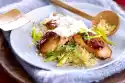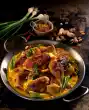 Place on a baking tray lined with baking paper and bake in a preheated oven (electric range: 225°C/ gas: level 4) for approx. 20 minutes. Leave to rest in the switched off oven for 5-10 minutes. Meanwhile peel onion and garlic. Finely dice the onion and press the garlic through a garlic press. Sort the spinach and wash thoroughly several times. Heat the fat in a saucepan, fry the onions and garlic until translucent and add the dripping wet spinach. Let the spinach collapse and bring to the boil. Season with salt, pepper and nutmeg. Cook the pasta in plenty of boiling salted water for about 5 minutes. Pour onto a sieve, drain and fold into the spinach. Cut the chicken filet into slices, arrange it with the noodles on a plate and pour the sauce over it. Sprinkle with parmesan slices and serve garnished with lemon and herbs as desired