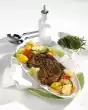Cut the chicken fillets into slices. Arrange on plates with the vegetables. Grind black pepper on top. Stir sour cream until smooth and add 1 tablespoon to each portion. Garnish with parsley. Serve with mashed potatoes