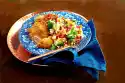 Peel garlic and onion and put them into the mixing bowl. Chop for 3 seconds/step 5. Add oil and steam for 3 minutes/flavour/step 1. Add tomato paste and steam for 1 minute/flavour/step 1. Add 1 l water and stock. Weigh the rice in the cooking insert and place in the mixing bowl. Place Varoma on top and cook for 30 minutes/flavour/step 1. Set Varoma aside, keep rice warm.