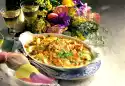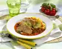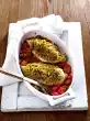 Wash, clean, quarter and seed the tomatoes. Cut the flesh into small cubes. Wash basil, dab dry and cut into fine strips. Take the meat out of the pan and cut into slices.