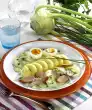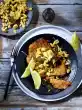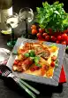Wash the chicken fillets and pat them dry. Wash, clean and halve the tomatoes. Peel and halve onions. Peel garlic cloves and press them through a garlic press or cut the garlic bulb in half. Wash, dry and slice the lemon. Heat the basil oil in a large frying pan. Sauté the garlic in it. Fry the fillets, tomatoes and onions for about 15 minutes, turning them carefully. Add lemon slices after 10 minutes. Season everything with salt and pepper. Drizzle with vinegar. Arrange chicken fillet with tomatoes and onions. Sprinkle with fresh herbs and olives. Serve with ribbon noodles