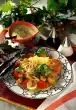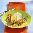 Heat the fat. Sweat flour and curry in it. Deglaze with the stock and cream and simmer a little. Season the sauce with salt, pepper and paprika. Heat the vegetables in the sauce. Drain the rice. Stir in parsley. Arrange rice, vegetables and meat