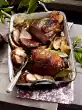Knead butter, bread and basil. Season with salt and chili flakes. Wash the meat, dab dry and season on all sides with salt and pepper. Put meat on a baking tray and spread with bread-butter-paste.